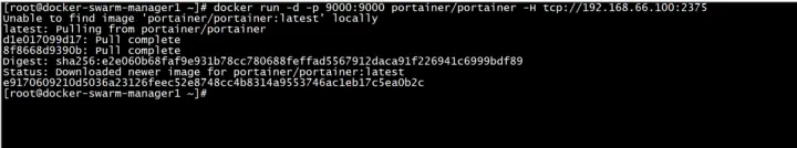 docker run -d -p 9000:9000 portainer/portainer -H tcp://192.168.66.100:2375