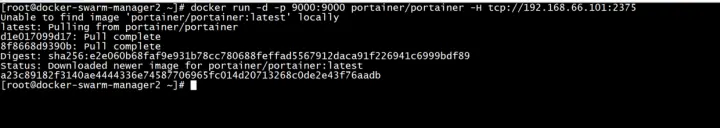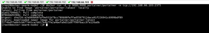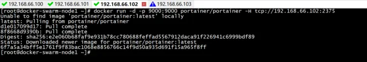 docker run -d -p 9000:9000 portainer/portainer -H tcp://192.168.66.102:2375