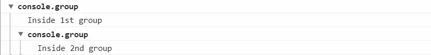 你可以使用 console.group() 来实现。通过使用该方法,你可以在控制台中输出深层可折叠的结构(组),它可以更好的组织你的日志输出。如果你希望在默认情况下折叠你的组,还有一个 console.groupCollapsed() 方法。当然,嵌套组也可以根据你的需要进行嵌套。你还可以通过向其传递参数列表(就像使用console.log()),使你的组具有类似于日志头的形式。在使用 group 方法时,每个 console 都将在创建的组中找到它的位置。可以使用 console.groupEnd() 方法来闭合一个组。