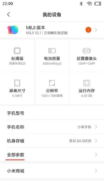接下来,找到“全部参数”一栏,点击进入“全部参数”界面。
