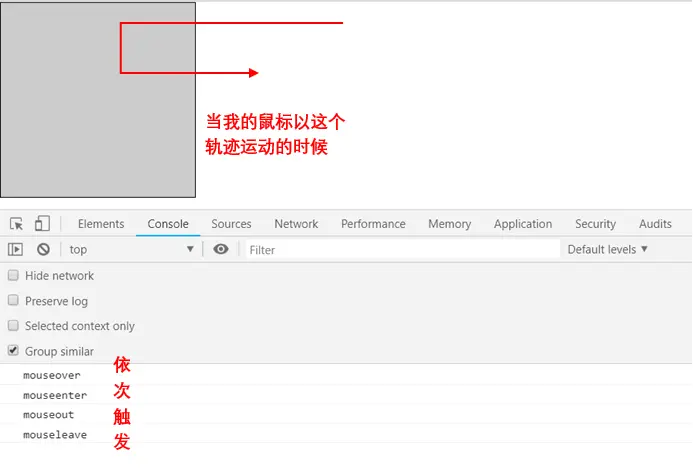 mouseover:当指针设备移动到存在监听器的元素或其子元素的时候,mouseover事件就会被触发。