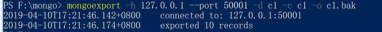 mongoexport -h 127.0.0.1 --port 50001 -d c1 -c c1 -o c1.bak