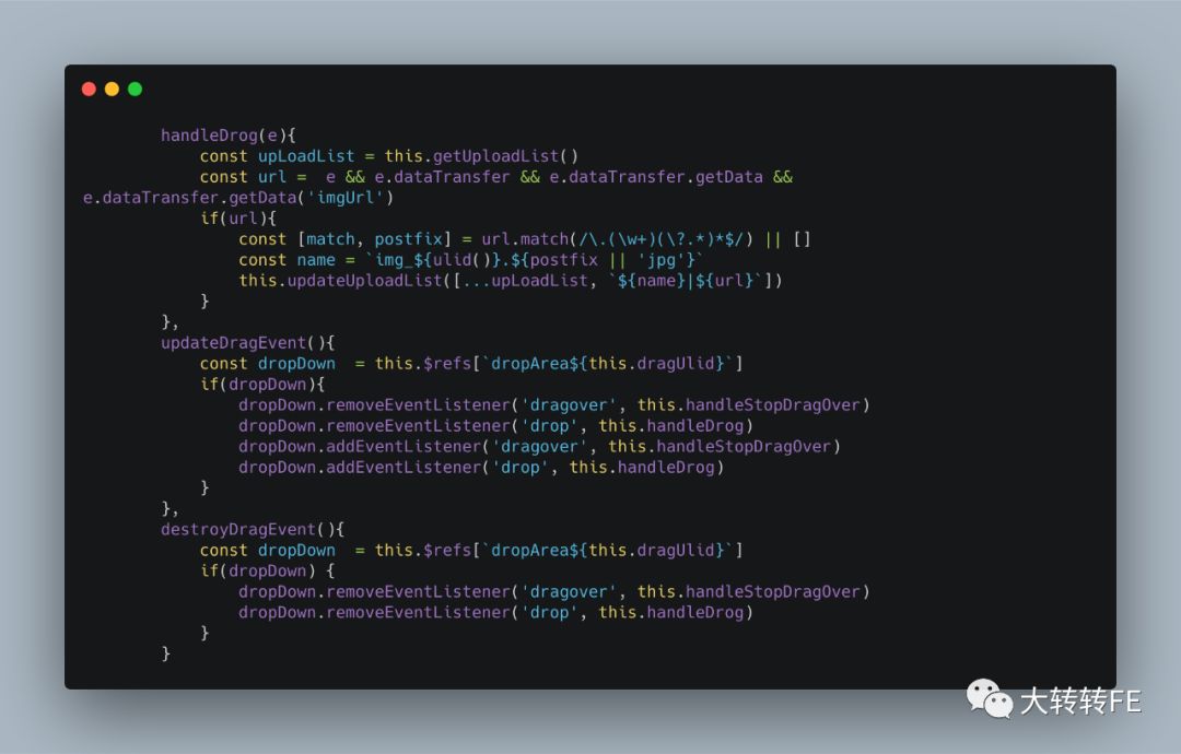 主要是基于DataTransfer和FormData,通过借助dataTransfer和formData实现从电脑的资源管理器直接拖拽图片到网页上传,具体过程是从电脑拖拽图片到网页,js在drop的事件中取到当前事件对象的dataTransfer进而得到文件对象,然后实例化formData对象,借助xhr异步上传图片,这无疑是一个锦上添花的功能