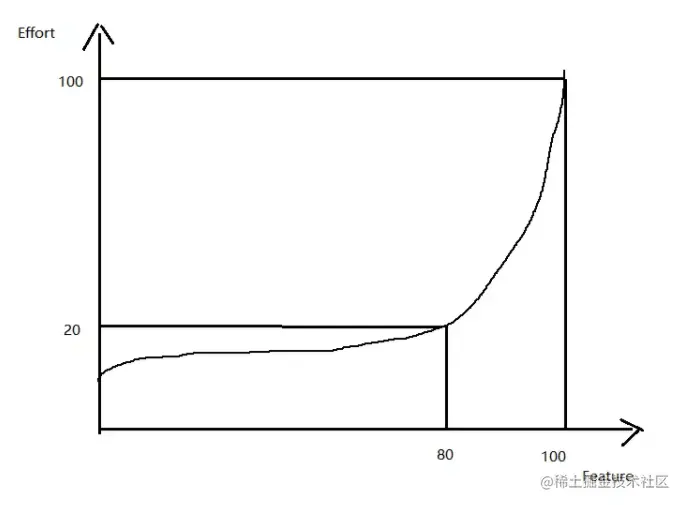 既然我们发现了这个规律,是否能指导我们的日常开发工作呢?答案是肯定的。因为80%的功能基本已经满足了大部分人的需求,而为了满足少数人的需求而增加80%的努力是不值得。当然,公司完全有理由要求你这么做,与此同时你也可以把这个利害关系介绍给他们听。