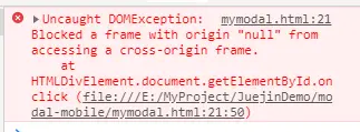 当我们准备用console.log(window.frames['modalComponent'].document.getElementById('my-modal'));获取弹框的Id时,却出现了这个错误!!!
