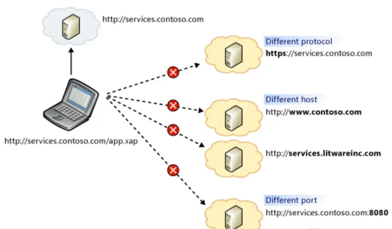 浏览器判断你跨没跨域,主要根据两个点。 一个是你网页的协议(protocol),一个就是你的host是否相同,即,就是url的首部: