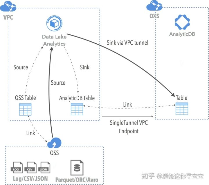 - 必须是同一阿里云region的Data Lake Analytics(DLA)到AnalyticDB的才能进行清洗操作;