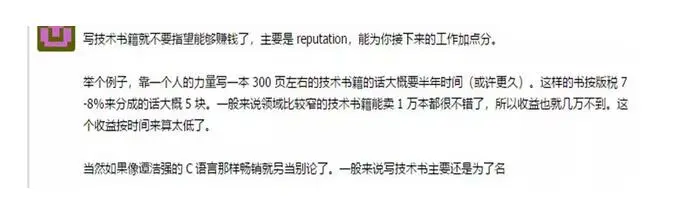 所以在选择名气和稿费之间需要作者自己做衡量,但出版社一般也不会接受作者的讨价还价。当然这种情况是说作者的第一本书,如果靠第一本书成为大牛后,就可以待价而沽了,就可以和出版社谈条件。 至此,我们出书的好处总结完毕,如果有其他补充,欢迎作者说出你的故事~