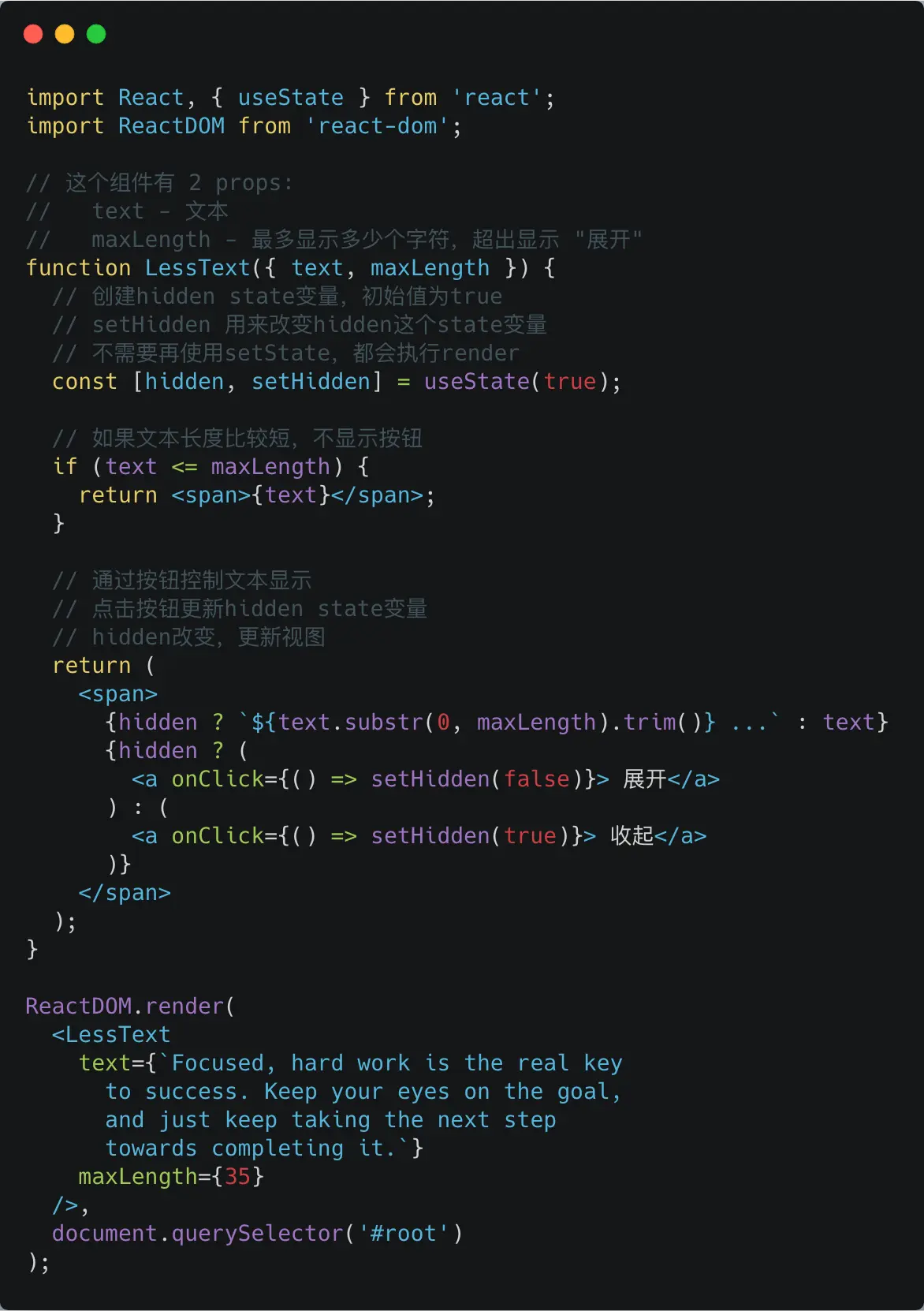 React 16.7 alpha之后,可以在function组件中创建state了,不用再每次都需要创建一个class component,更加函数式了。