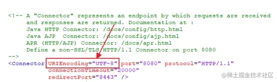 这种乱码主要发生在 GET 请求中,因为在 GET 请求中我们一般通过 URL 来传递参数,这个问题可以在代码中解决,但是太过于麻烦,因此一般我们直接在Tomcat配置中解决,修改 Tomcat的conf/server.xml 文件,修改 URL 编码格式,如下