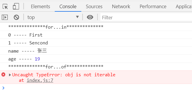 2.for...of不能遍历对象,从报错的信息可以看出for...of只能遍历iterable对象。顺便提一下iterable对象:就是实现了Iterator接口的对象,只要一个对象有Symbol.iterator属性,并且这个属性指向一个返回值包含next方法的对象的函数,那么就说明这个对象实现了Iterator接口,如下所示:
