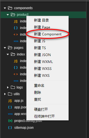 一个自定义组件包含 wxml wxss json js 4个文件, 使用微信开发者工具可以快速创建一个自定义组件的这四个文件。
