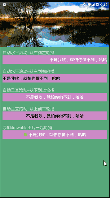 在这个思路下,我们自定义一个容器,继承 FrameLayout ,根据数据数量自己 new 相应数量的 itemView 出来加入 FrameLayout ,动画是通过对当前 itemView 做一个出去的佛纳甘话,同时对下一个 itemView 做一个进入动画,使用 handle 实现延迟轮换