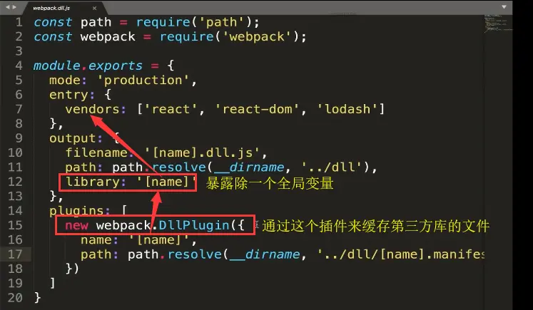 - 创建一个 webpack.dll.js 配置文件
