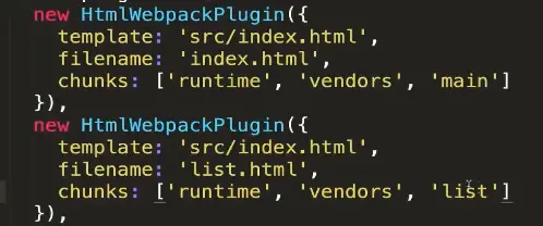 - 比如我们要打包两个js文件,并且通过两个 index.html 分别引入