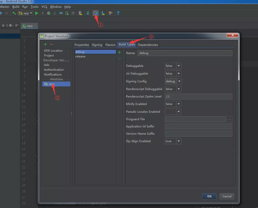 renderscriptDebuggable false//是否开启渲染脚本就是一些c写的渲染方法