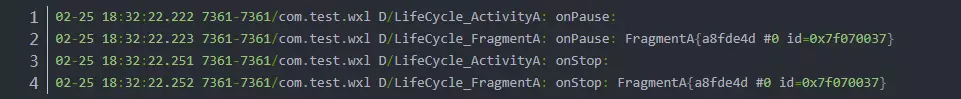 02-25 18:38:07.592 10048-10048/com.test.wxl D/LifeCycle_FragmentA: onStart: FragmentA{f756b52 #0 id=0x7f070037}