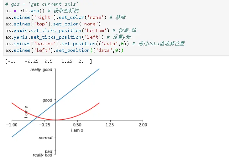 ax.spines['bottom'].set_position(('data',0)) # 通过data值选择位置