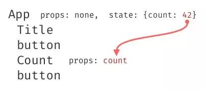 count 存在 App 的 state 里,会以 prop 的形式向下传递: