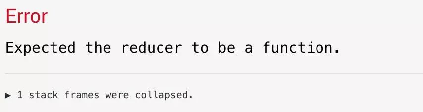 这样会遇到 “Expected the reducer to be a function.” 错误。