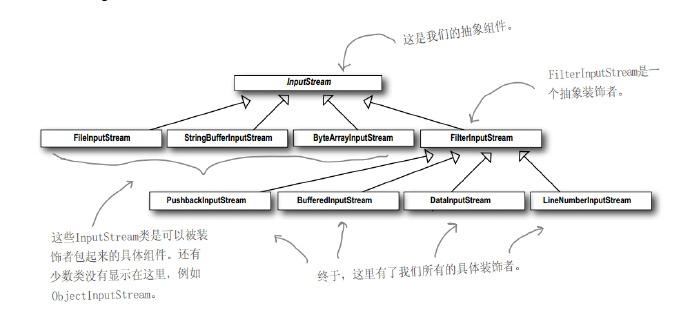 // 设置FileInoutStream,先用BufferedInputStream装饰它,再用我们崭新的LowerCaseInputStream过滤器装饰它