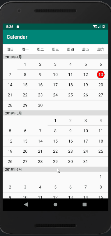 使用RecycleView来实现,需要做的就是填充ItemView,这里为了获取数据集方便,以“月”视图作为ItemView