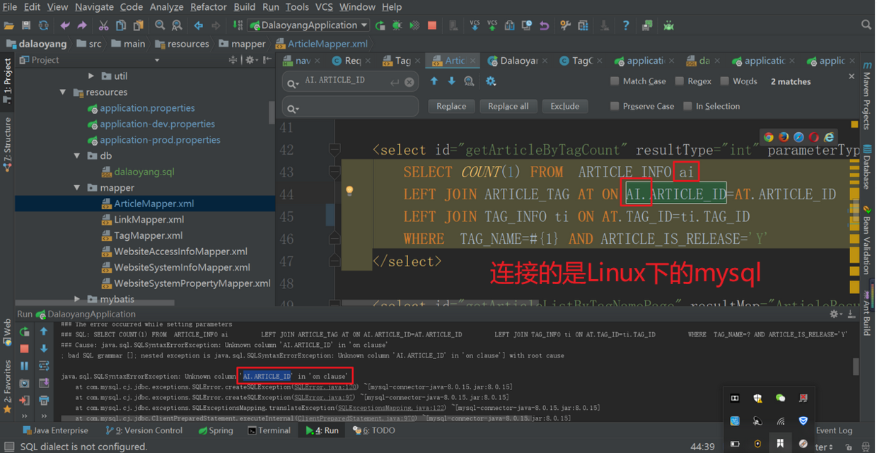 根据网上的方法在Linux端的mysql的配置文件my.cnf当中加入lower_case_table_names=1设置数据库为不敏感,在Windows端的mysql的配置文件my.ini当中加入lower_case_table_names=0设置为敏感,最终都以失败告终,服务直接起不来。只能通过修改代码来解决错误
