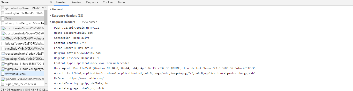 查看POST请求 步骤基本等同POST 登录百度时查看: