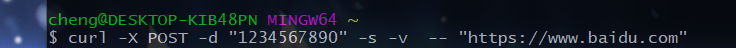 curl -X POST -d "1234567890" -s -v -- "https://www.baidu.com"