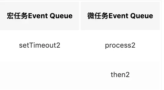 - 第二轮事件循环宏任务结束,我们发现有process2和then2两个微任务可以执行。