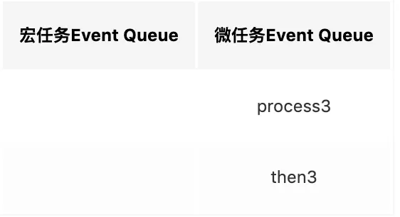 - 第三轮事件循环宏任务执行结束,执行两个微任务process3和then3。