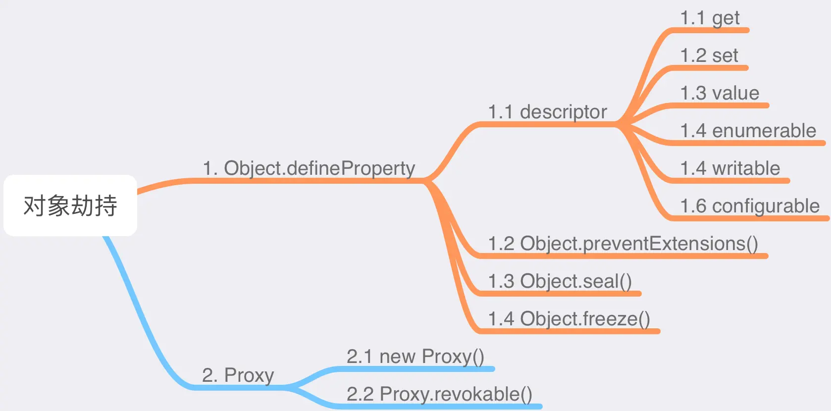 defineProperty主要是用于对象定义属性,注重的是设置对象中属性的描述,而Proxy用于处理对象,注重的是对象的相关操作 - 操作目标不同: