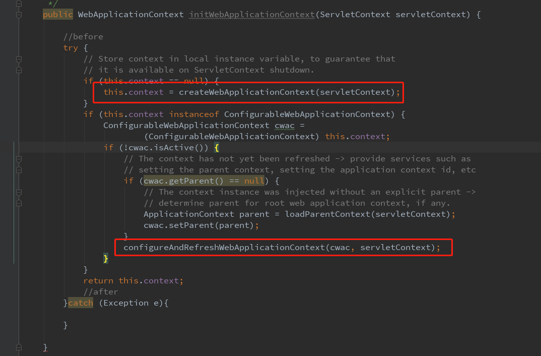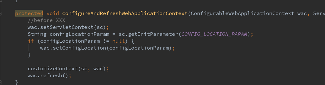 而后进入configureAndRefreshWebApplicationContext(cwac, servletContext)
