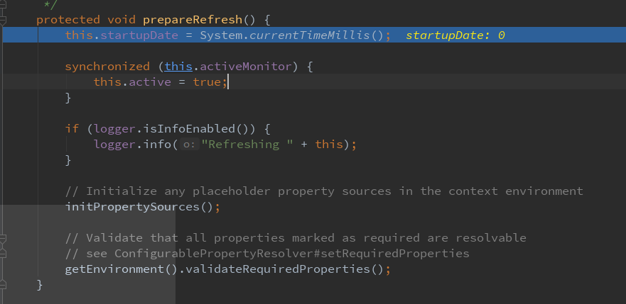 getEnvironment().validateRequiredProperties() 校验设置属性