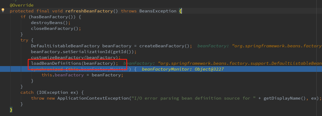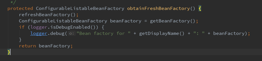 ConfigurableListableBeanFactory beanFactory = obtainFreshBeanFactory();