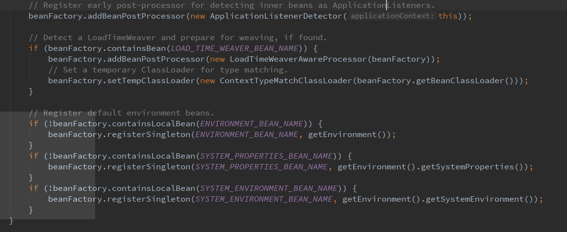 注册ApplicationListenerDetector :在bean初始化后 检查如果是listener的话 执行applicationContext.addApplicationListener
