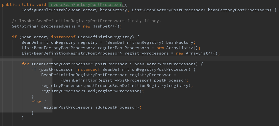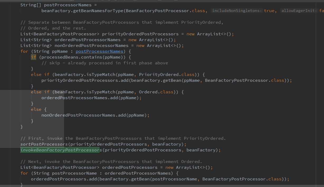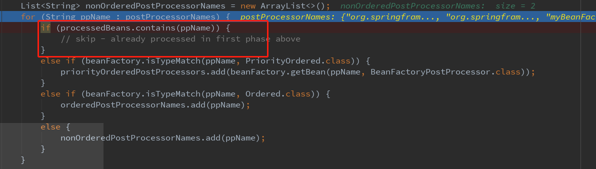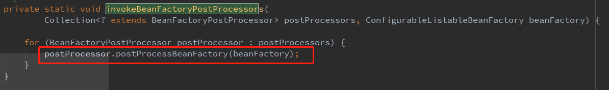 再执行postProcessor.postProcessBeanFactory(beanFactory)