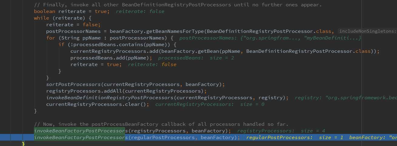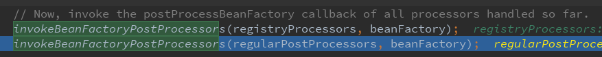 - 再执行BeanDefinitionRegistryPostProcessor的postProcessBeanFactory