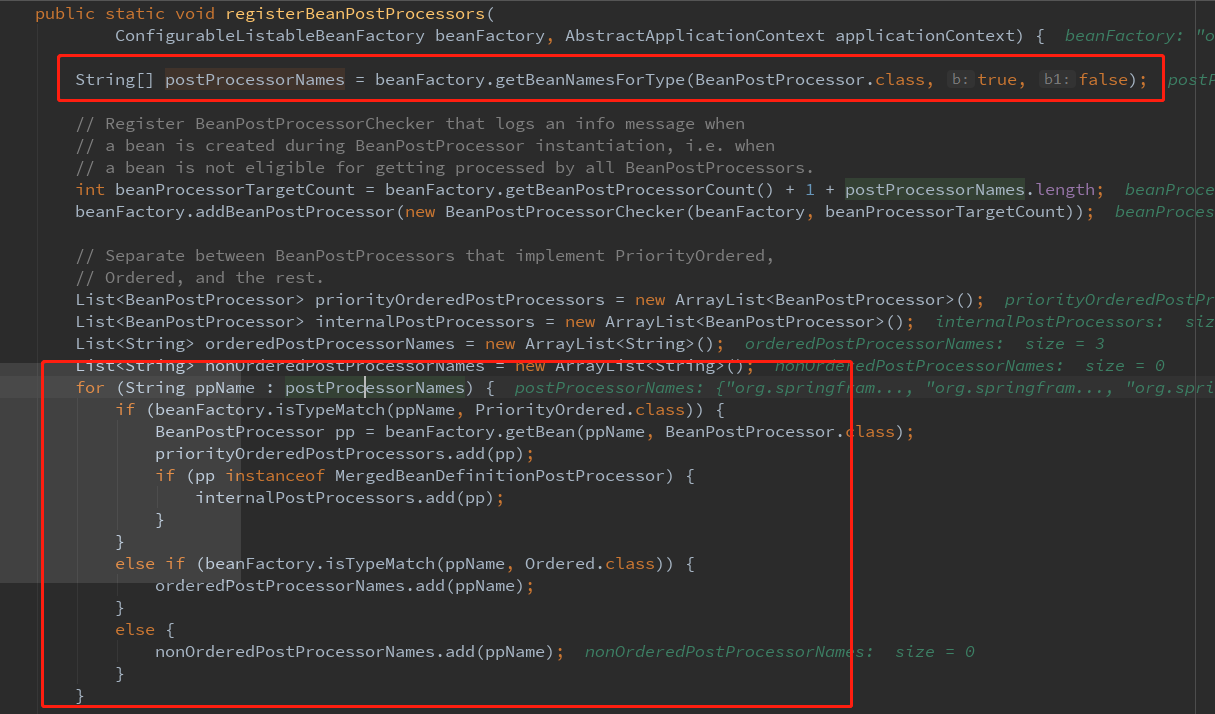 - 先执行BeanDefinitionRegistryPostProcessor的postProcessBeanDefinitionRegistry