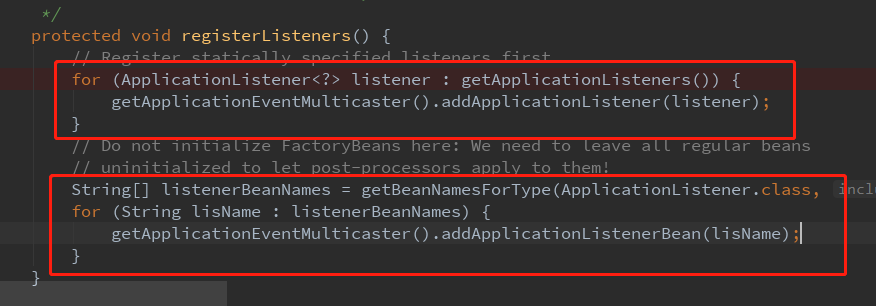 - getApplicationEventMulticaster().addApplicationListenerBean
