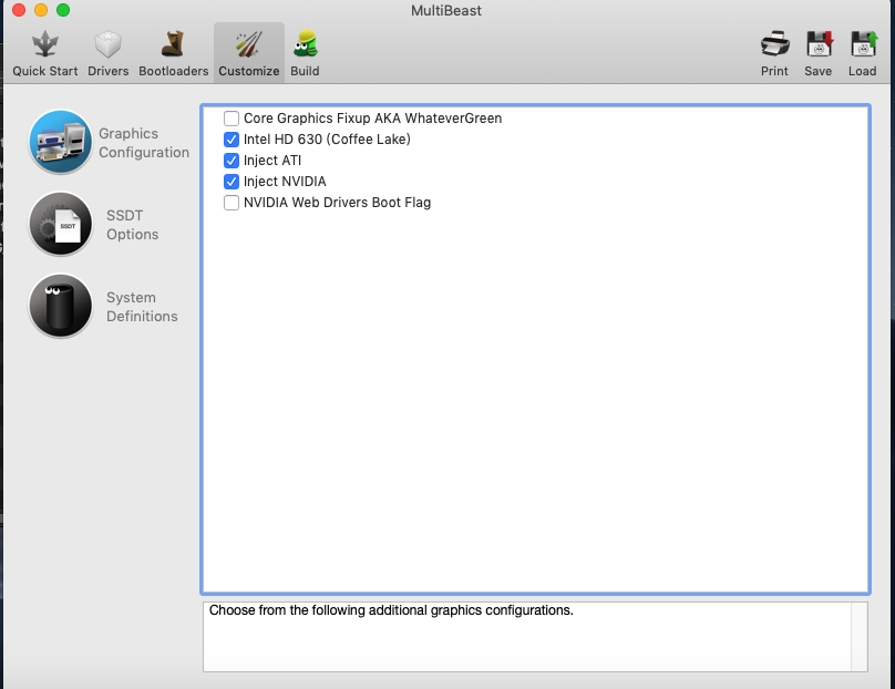 - Graphics Configuration>Intel HD 630 + inject ATI + inject NVIDIA(可以先不要)