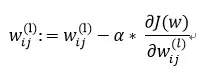 反向传播:梯度下降法更新权重w。其中α为步长。