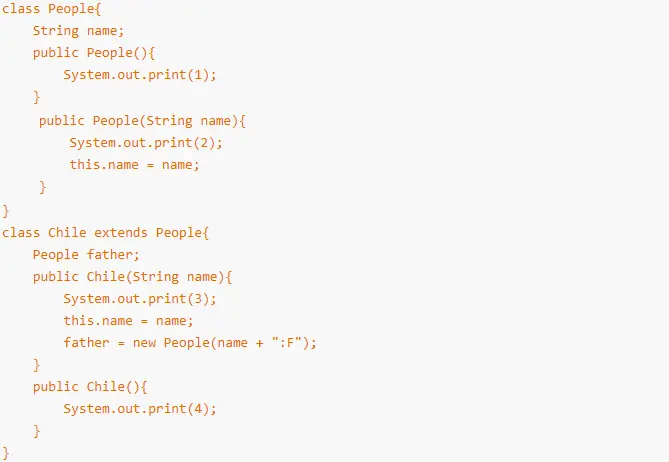 18.下面的People和Child类的定义和构造方法,每个构造方法都输出编号,在执行new Chile("mike")的时候都有哪些构造方法被顺序调用?请选择输出结果