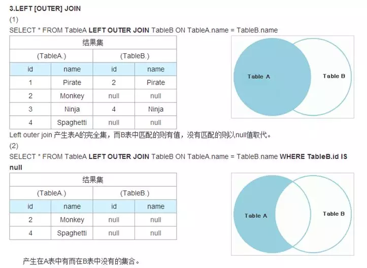 LEFT JOIN会以右表为基础,包含左表的所有记录,以及右表匹配ON条件的记录,对于未匹配的列,会以NULL表示。