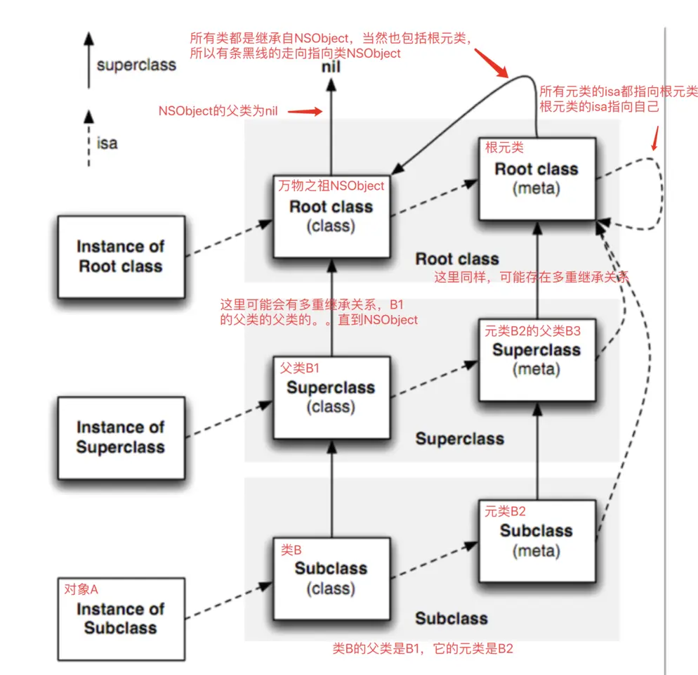 object_getClass获取对象的类,类对象存储的位置是哪里?在文章笔记-runtime源码解析之让你彻底了解底层源码里讲述过,它是存在元类中,所以class4为元类,同样class5为根元类。如果还有疑问的话,可以接着往后看,或者评论里留言给笔者。