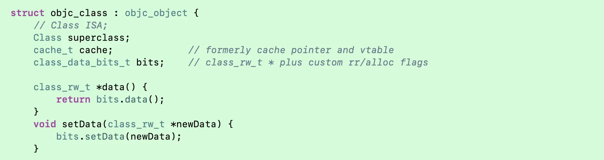 isa、superclass、cache在上面简单描述了,这里不再重复,着重看下面,直接看下面代码