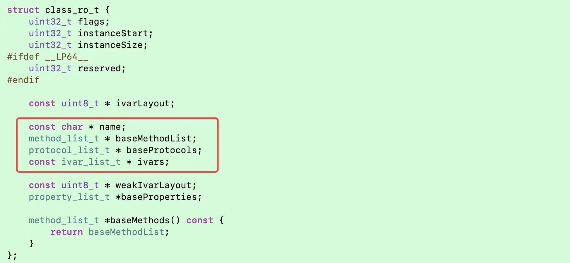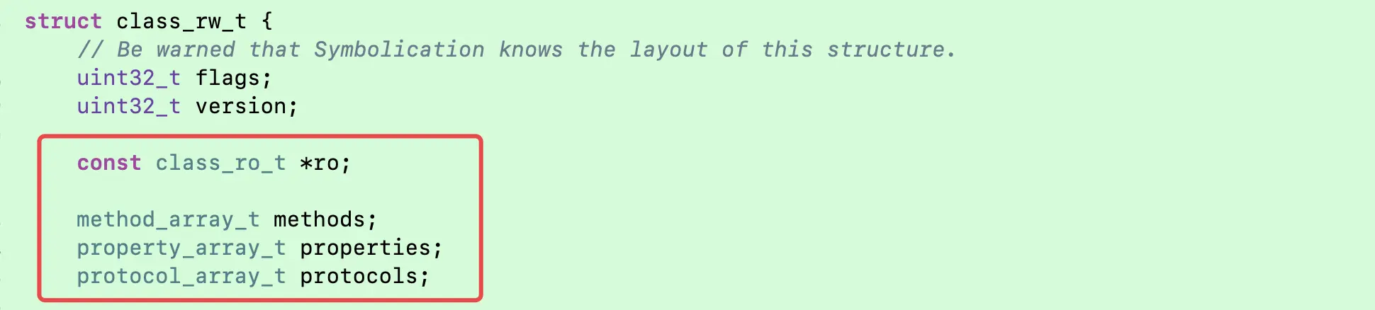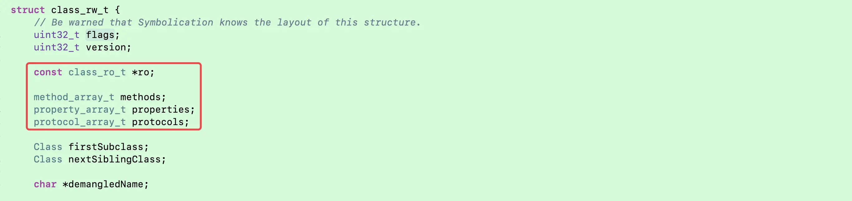 除了methods、properties、protocols,还有一个class_ro_t需要看一下,上源码