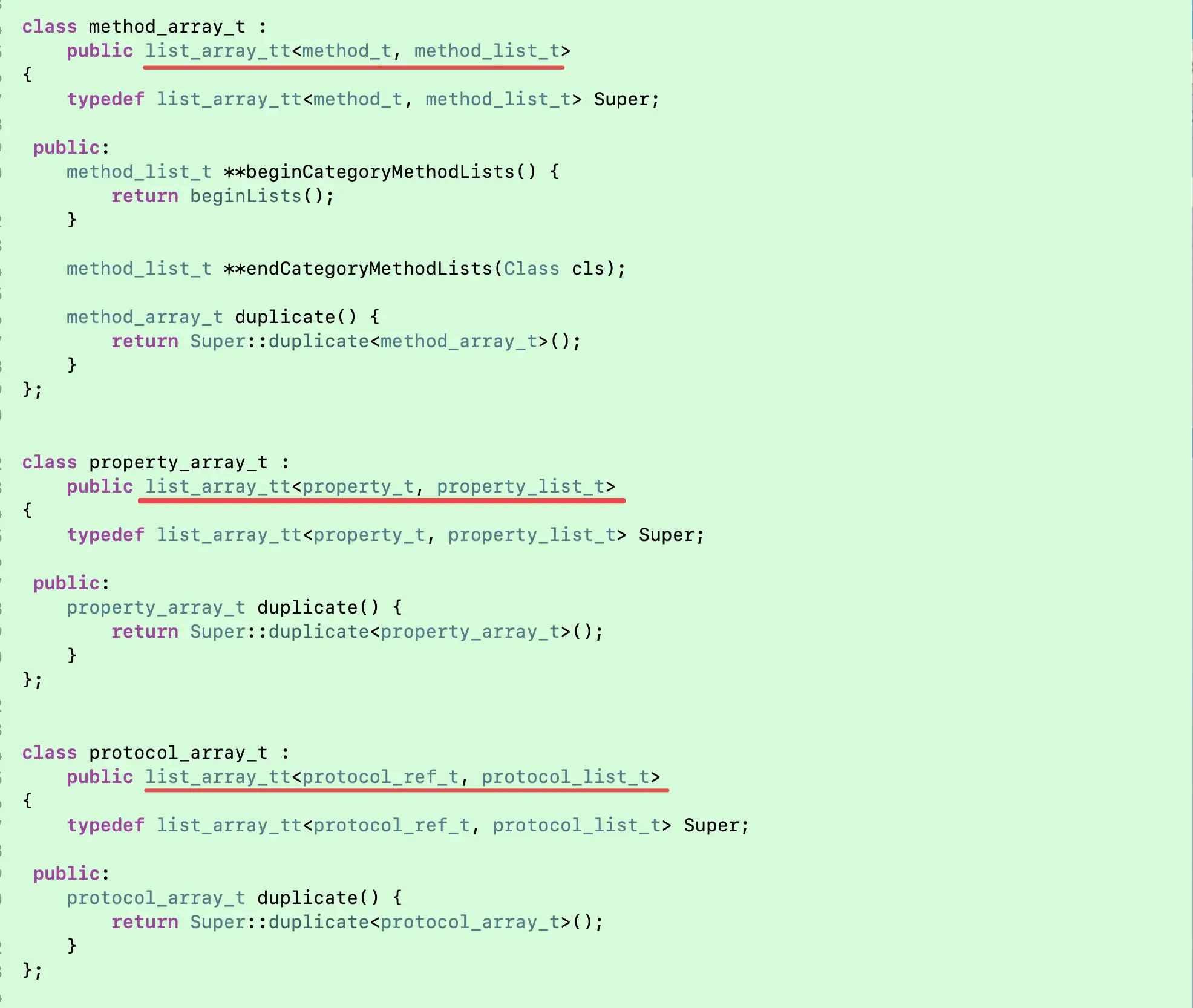 这里的list_array_tt是一个二级指针型的,存放着我们常用的属性列表、方法列表、协议列表。