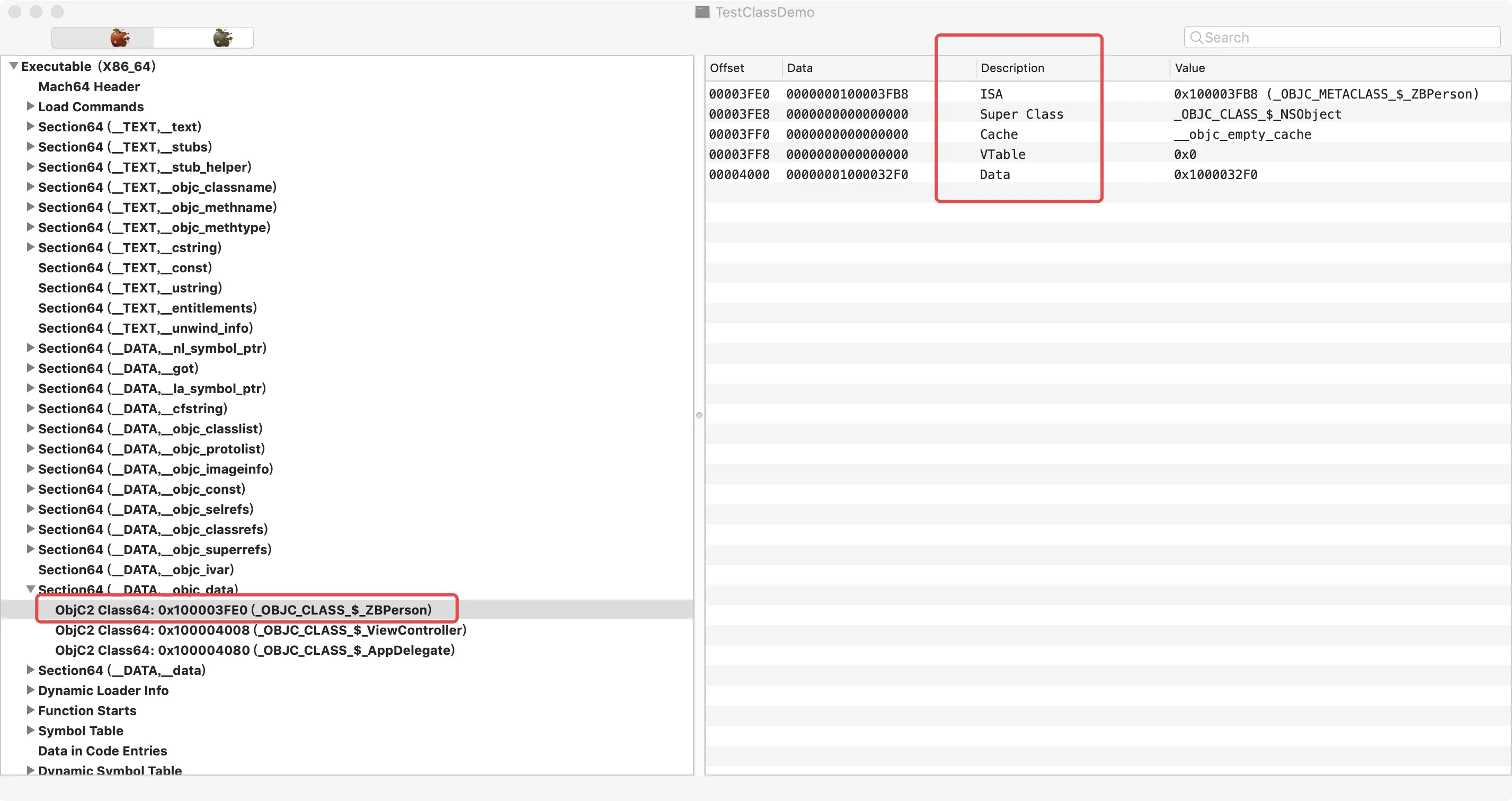 x 0x6000034232c0输出的是ZBPerson这个类内存的情况,图上说明了,前八字节指的是isa,为什么呢?看下面几段源码