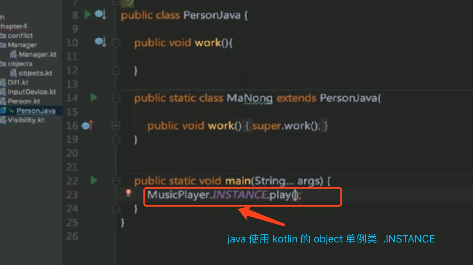 为Runnable起了别名后, java调用加别名后的kotlin 方式如下: